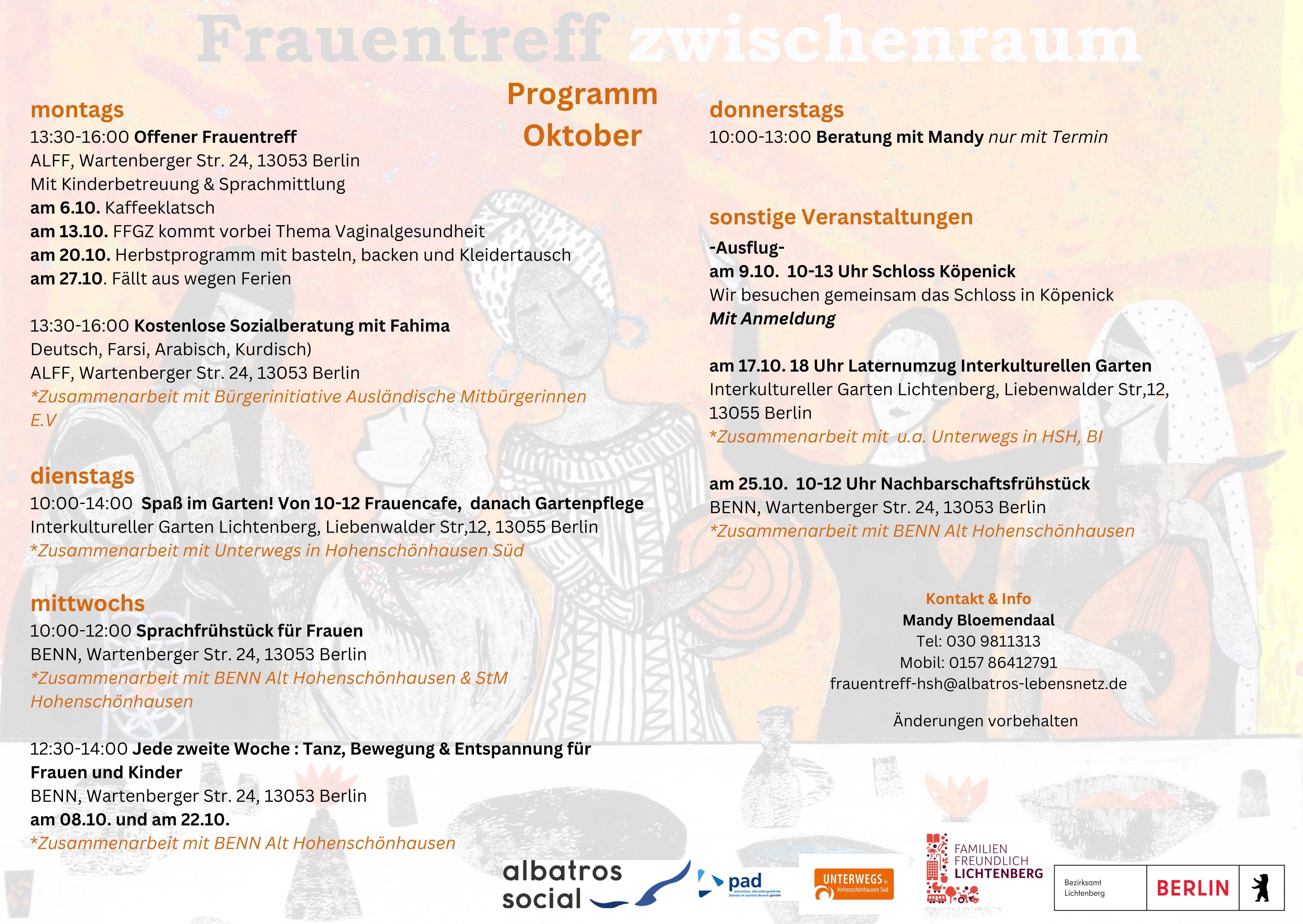 Der Frauen*treff Zwischenraum ist ein Ort der Vielfalt und Begegnung in Alt-Hohenschönhausen. Willkommen sind alle Frauen*