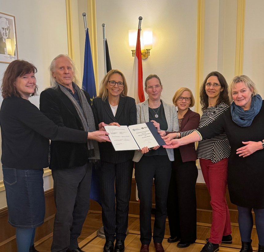 Zur gemeinsamen Unterzeichnung der Kooperationsvereinbarung, begrüßte die Präsidentin der Polizei Berlin, Dr. Barbara Slowik Meisel, Vertreterinnen und Vertreter der sechs Träger des Berliner Krisendienstes, Friedrich Kiesinger für die Albatros gemeinnützige Gesellschaft für soziale und gesundheitliche Dienstleistungen mbH, Dr. Daniela Ringkamp für den Caritasverband für das Erzbistum Berlin e. V., Susanne Frerichs für den Kontakt- und Begegnungsstätte (KBS) e. V., Petra Faack für den Krisen- und Beratungsdienst (KUB) e. V., Cornelia Praetorius für die Neuhland Hilfe in Krisen gGmbH und Christina Gloth für die Platane 19 gGmbH im Polizeipräsidium am Platz der Luftbrücke.